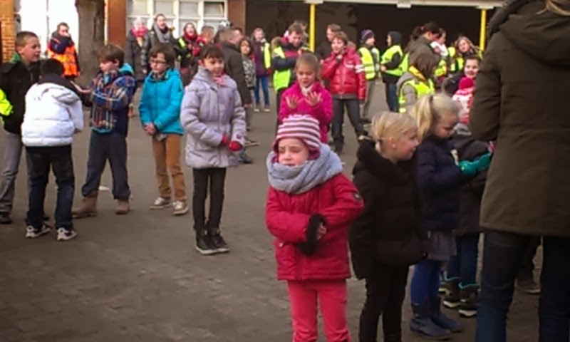 We begonnen de dag met een warm-up op de speelplaats met alle kleuters en leerlingen.
